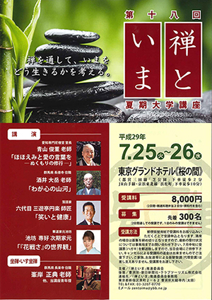 「禅といま」推進委員会が主催する「夏期大学講座」は、仏教、禅に親しむ方がたが相集い、共に学び共に語らう2日間通じての講座です。 今回は、2日…