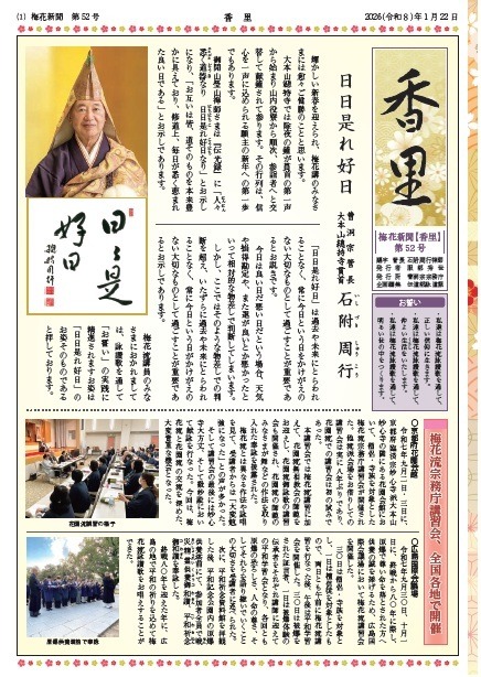 梅花新聞 『香里』 第52号を掲載いたしました 2026.02.15 NEW 連載・コラム 令和8年1月22日発行の『香里』第52号を掲載いたしました。 こちらのページからPDFとe-bookの形式でご覧いただけます。