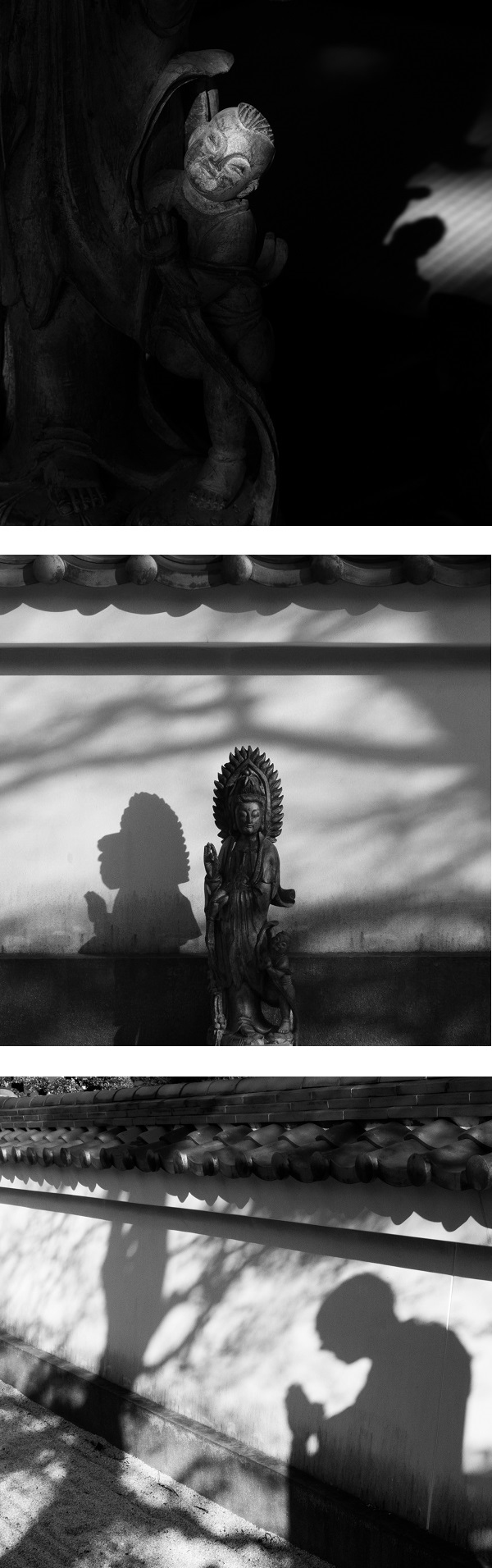 光と影を強調して、お寺の佇まいを描き出した作品です。撮影地は契珊寺という曹洞宗の寺院です。3枚の写真から禅寺なのではないか、と思ったのですが、それは写真の表現力の確かさによるのでしょう。ただ最初の写真は画面の大半を占めるシャドー部にグラデーションがなく、仏様がどのような環境にあるのか把握できないのが残念です。それに比べ、他の2枚は作者の思いのままを投影したシンプルな映像で、お寺の心地よさが映し出ています。