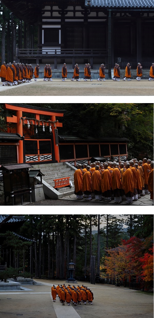 高野山の早朝に修行僧が御堂を巡り般若心経を唱えていく映像は、過去幾度も入賞を果たしています。それだけに新鮮味に欠けてしまうのが残念です。ただ高野山の練行風景はとてもドラマチックで、カメラマンには格好のモチーフなのでしょう。ところで本作品ですが、3枚組で練行の佇まいを表現しました。それにより練行の時間経過が表現されました。