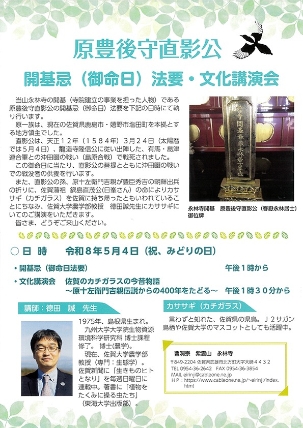 5/4 永林寺 原豊後守直影公 開基忌(御命⽇)法要・⽂化講演会(佐賀県永林寺)