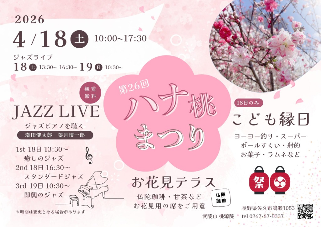4/18・19 ハナ桃まつり&ジャズライブ(長野県 桃源院)