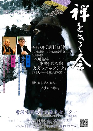 2026年3月11日(水)に『禅をきく会』が大宮ソニックシティ1階大ホールにおいて12時30分より入場無料、事前予約不要にて開催致します。